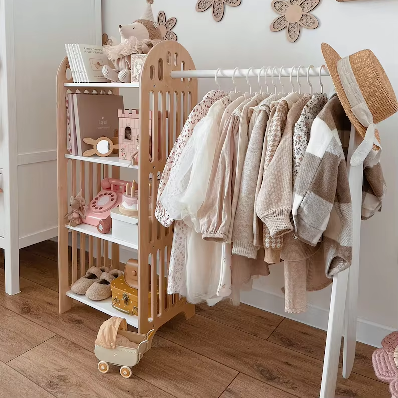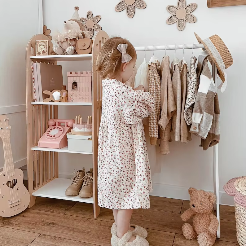 Montessori Wooden Wardrobe Kids Clothing Rack Montessori Furniture Montessori Shelf Kids Furniture Toy Storage