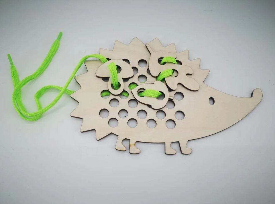 Montessori-inspired Wooden Lacing Toys Bamboo Sewing Board Hedgehog Toy Educational Gift for Kids
