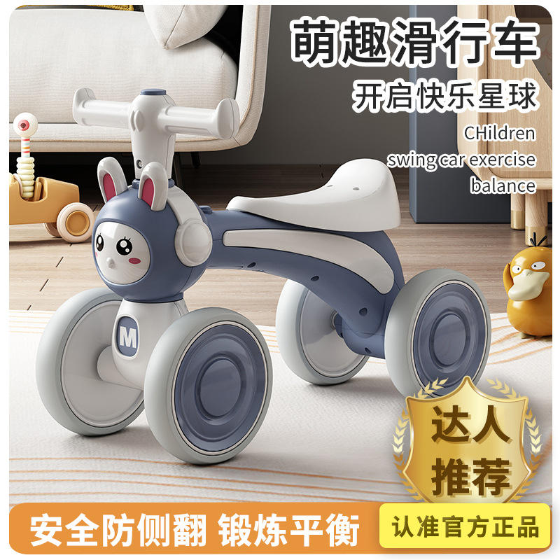 Moomoo Kids Balance Bike 12 Inch Four Wheel Adjustable Seat For 1-3 Years Old Toddlers