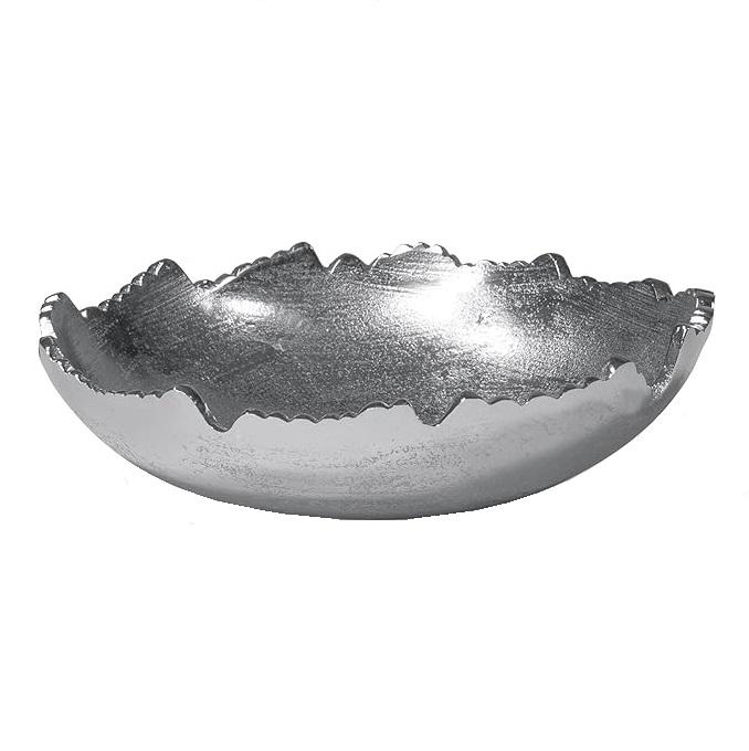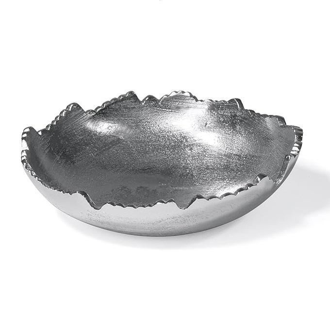 Moon Asymmetrical Torn Salad Chocolate Bowl Hand Hammered Metal Polished Finish Sculpted Edges for Nesting Snacks Serving