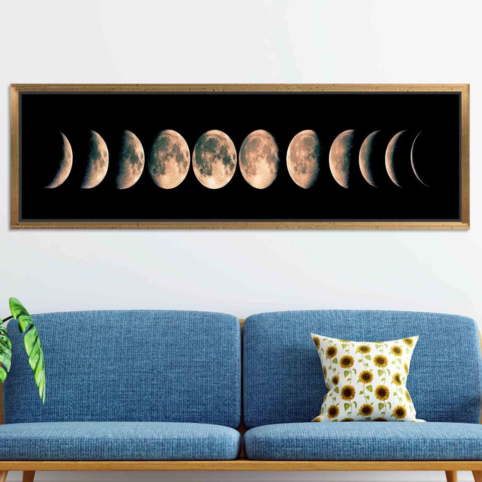 Moon Phases Canvas Art: Galaxy Landscape Printed Canvas Artwork,GOLD FRAMED CANVAS