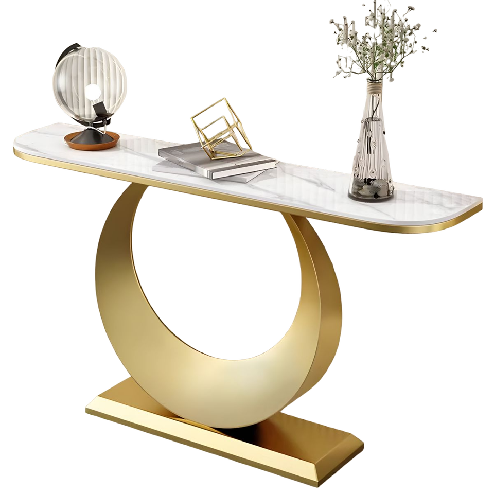 Moon Shape Gold Coated Console Table Tempered Glass Top Coffee Table Console Table for Sale Elegant Home Living Room Hotel