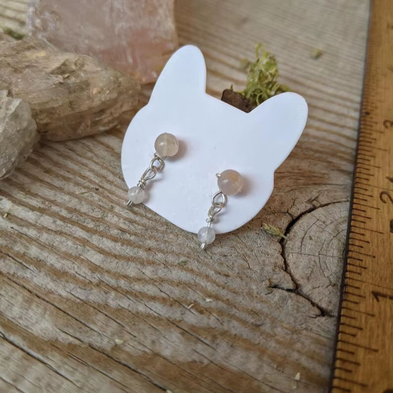 Moonstone And Flower Agate Crystal Stud Earrings Minimalist Handmade Earrings Gift For Her