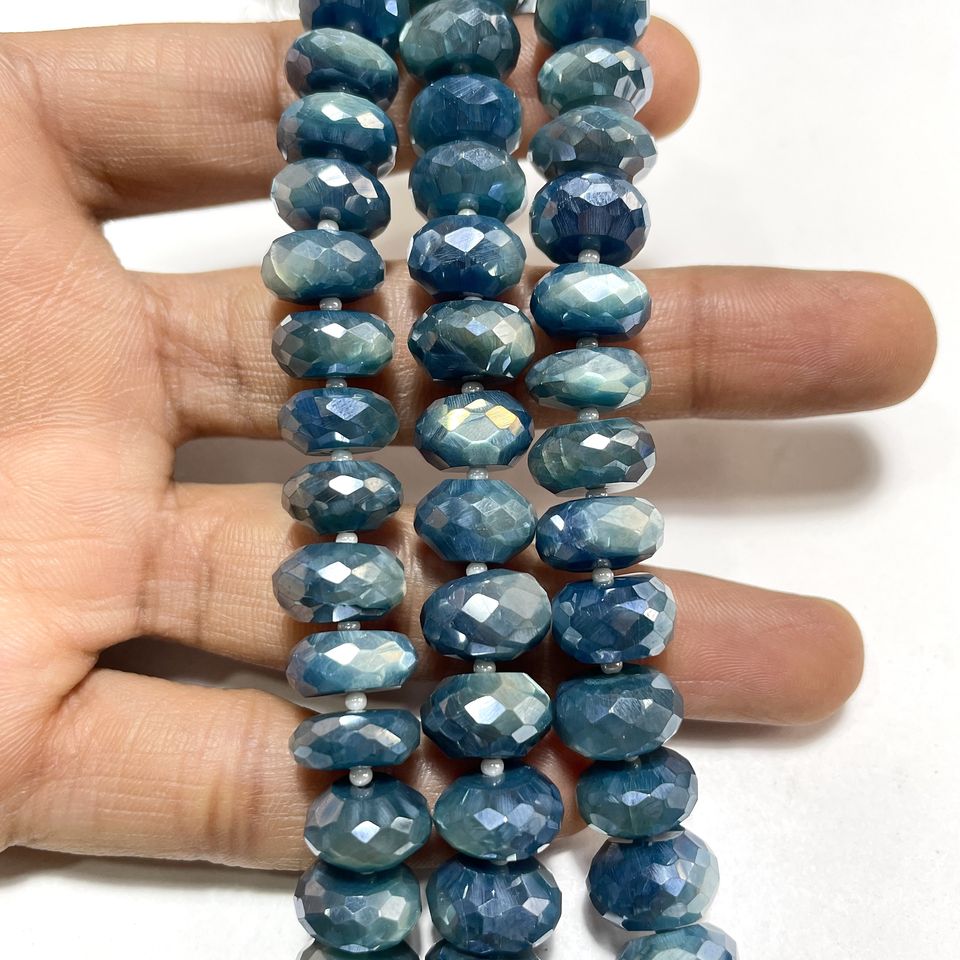 Moonstone Coated Faceted Rondelle Shape Beads 11-11.5mm Size Sky Blue Color for Jewelry Making Wholesale Beads