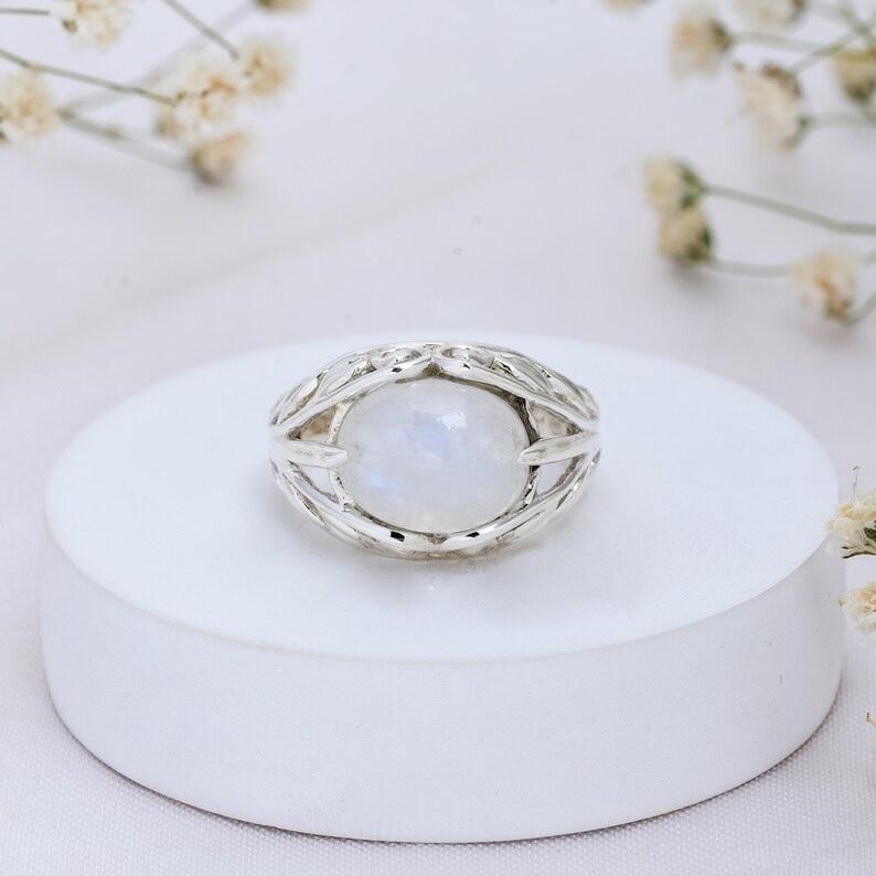 Moonstone Designer Statement Ring 925 Sterling Silver Handmade Blue Flash Gemstone Jewelry Elegant Moonstone Ring Unique Gift