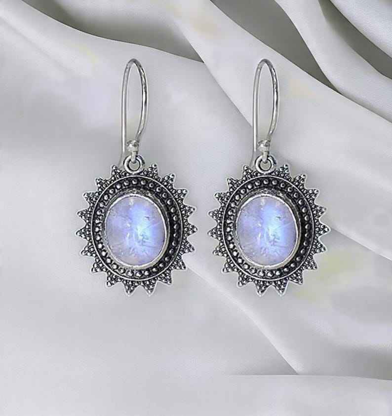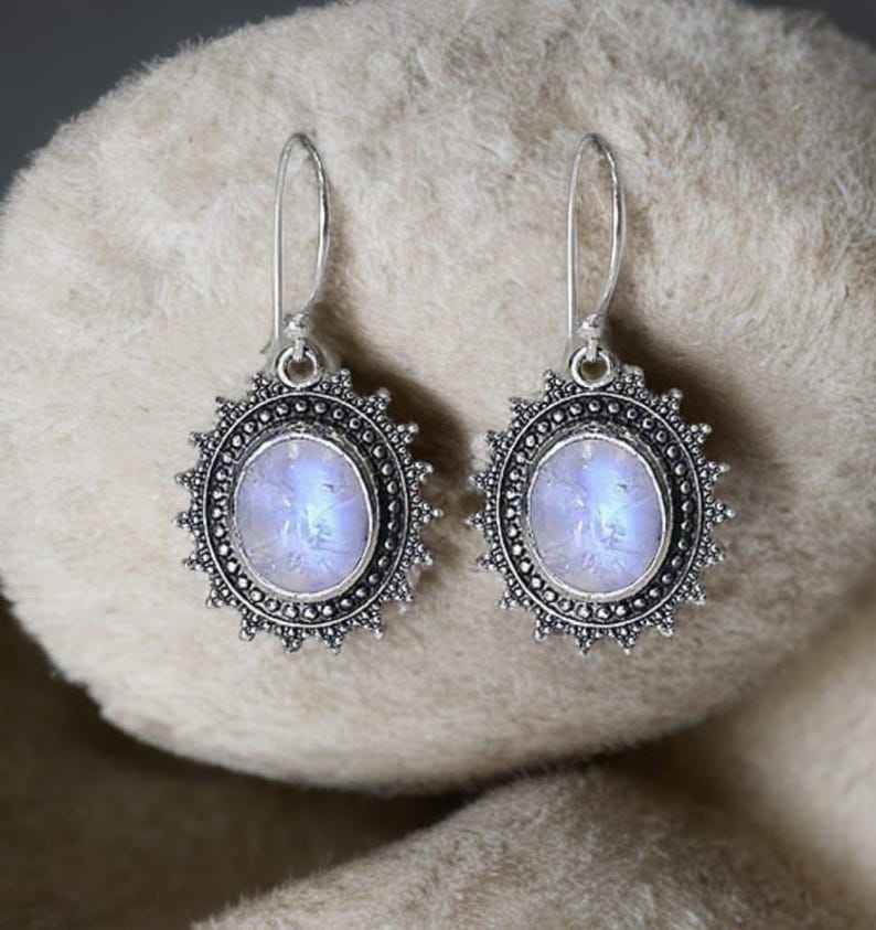 Keyword:Moonstone Stud Earrings Sparkling Moonstone Stones