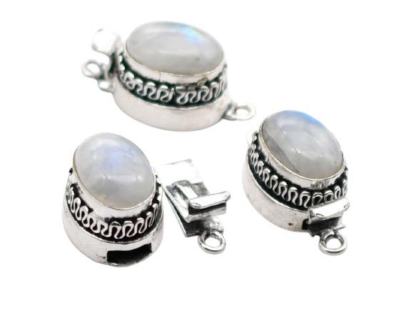Moonstone Gemstone 1Strand, 2Strand & 3Strand Box Clasp Antique Starling Silver Plated 26X15X10MM Jewelry Making Clasp B702
