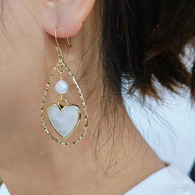 Product name:Moonstone Heart and Freshwater Pearl Drop Earrings