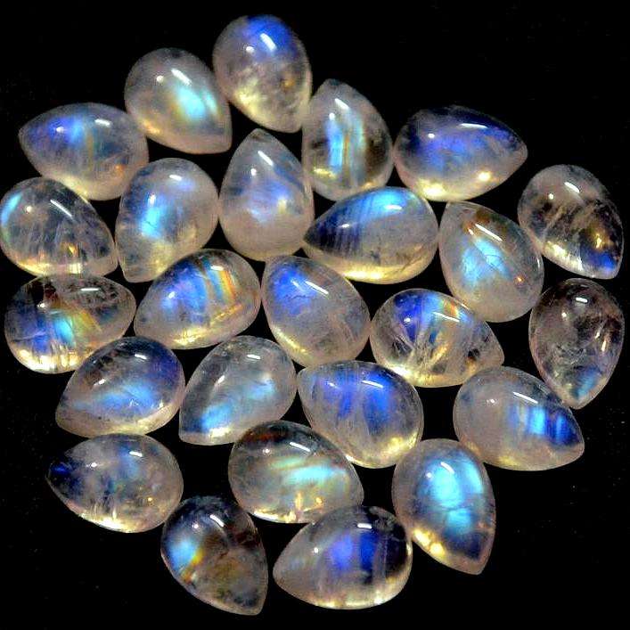 Moonstone Color Change Multi-fire Pear Shape Loose Gemstone Polished Plain Cabochon for Jewelry Making Natural 5mm-10mm