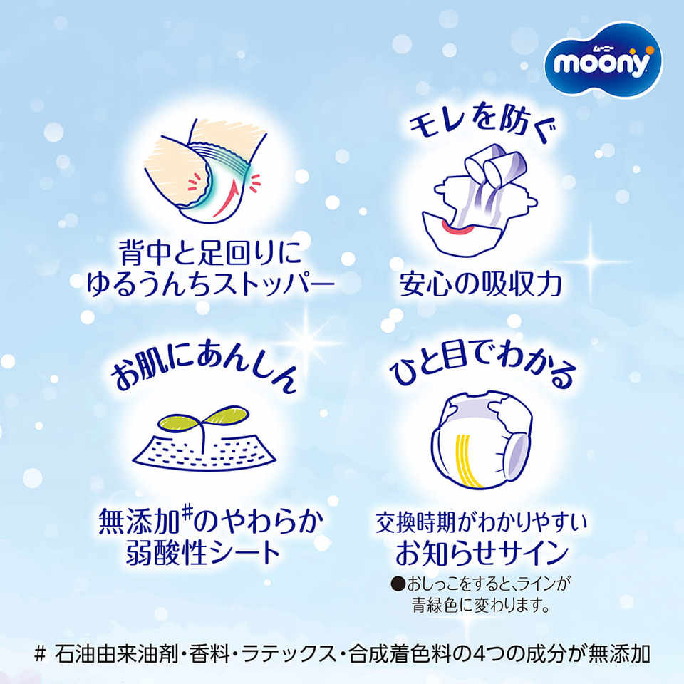 Wholesale Moony Diaper Japan Fluffy Disposable Cotton Baby Pants Training Style 54 Sheets for 8.8-17.6 Lbs (4-8kg)