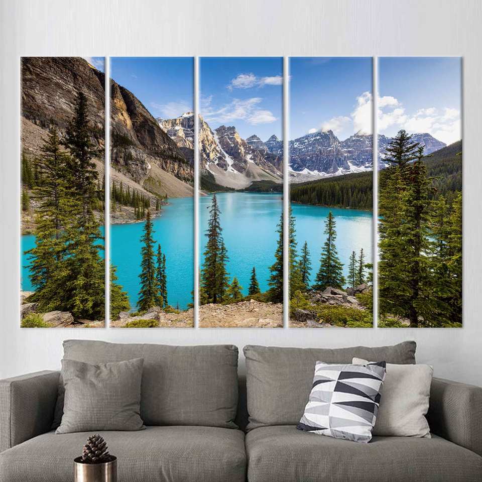 Moraine Lake, Canada Landscape Wall Art: Alberta Art Printed Canvas,5P:Gallery Wrapped