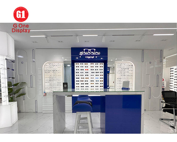 Morden Custom Optical Store Cabinet Trendy Wooden Glasses Furniture Eyewear Shop Display Counter LED Light