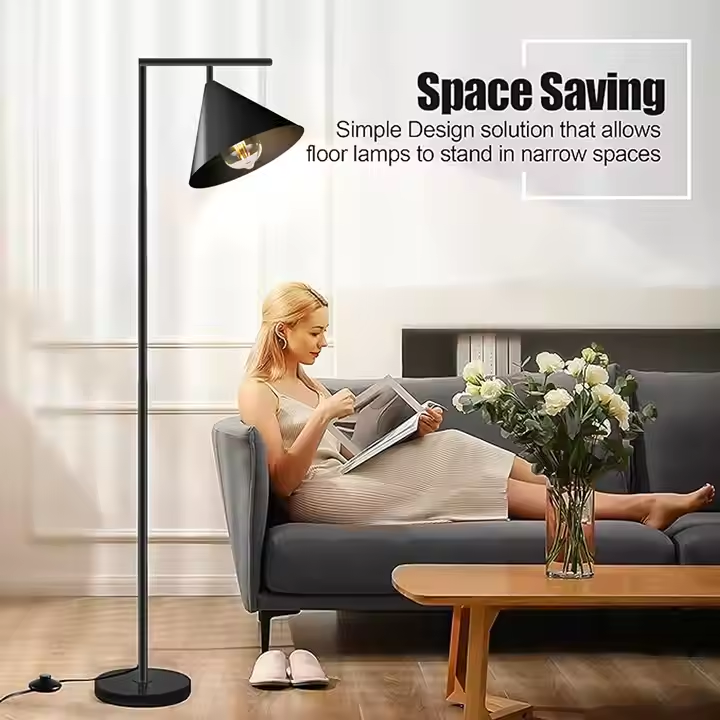 Morden Style Black Housing Color Indoor Living Room Iron Glass 40w E27 Base Standing Floor Lamp