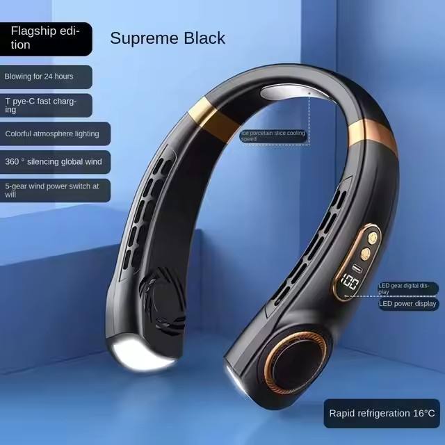 Morden Style China Leafless Neck Black Hand Held Fan Neck Fan Usb Recharging Fan With Logo