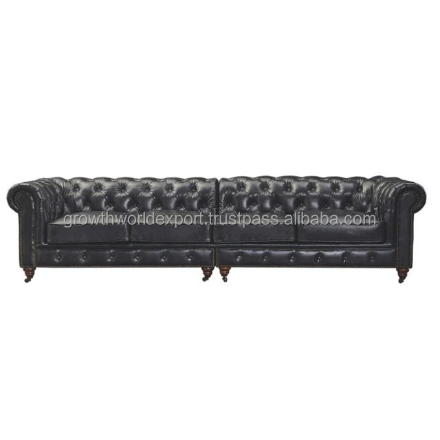 Mordren 4 seater black leather sofa Best Selling Premium Quality Chesterfield Leather Sofa for Dining Best sofa 2025 new set