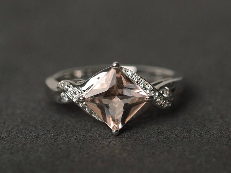Morganite Engagement Ring Pink Princess Cut Morganite Ring Fine Jewelry For Women