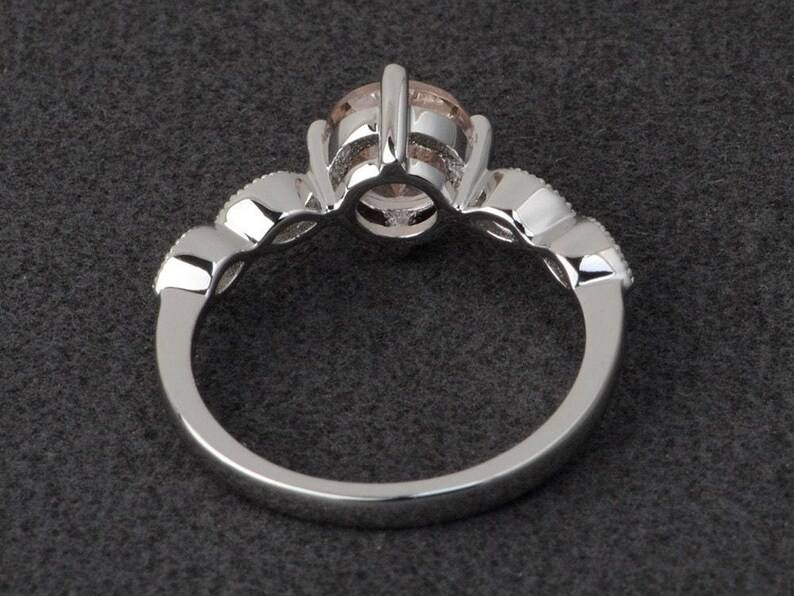 Morganite Ring Silver Round Cut Morganite Gemstone Engagement Ring Pink Fine Jewelry For Women