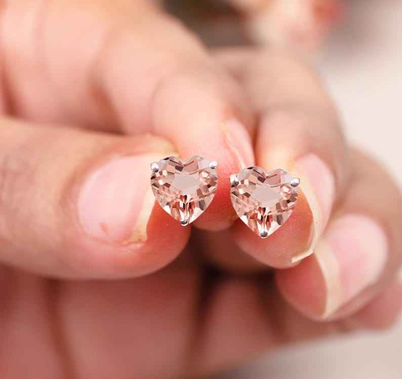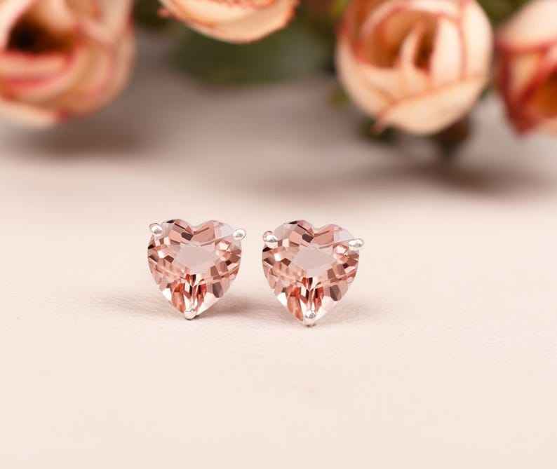 Morganite Stud Earring Women Earring Heart Shaped Morganite Earring Birthstone Jewelry Anniversary Gift Bridal Stud