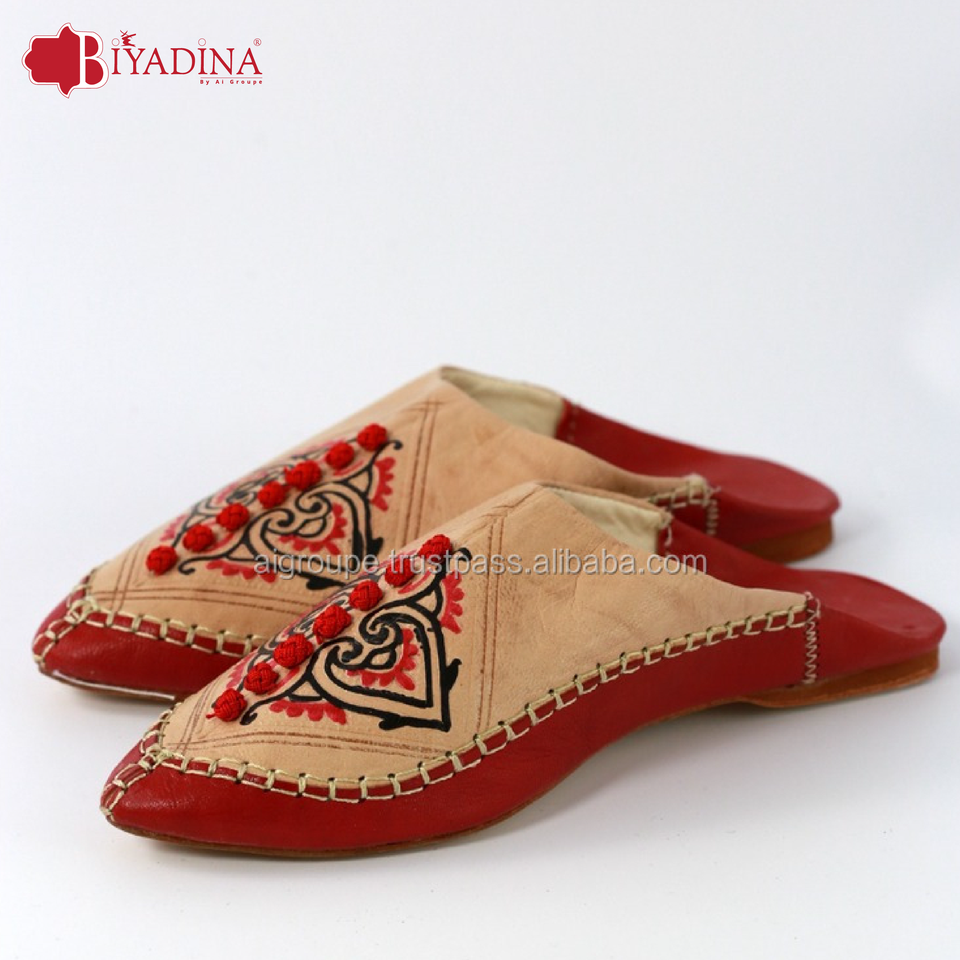 Moroccan Babouches Are Stunning Handmade Traditional for Ladies, These Moroccan Babouches Are 100% Leather Red & Beige Trendy