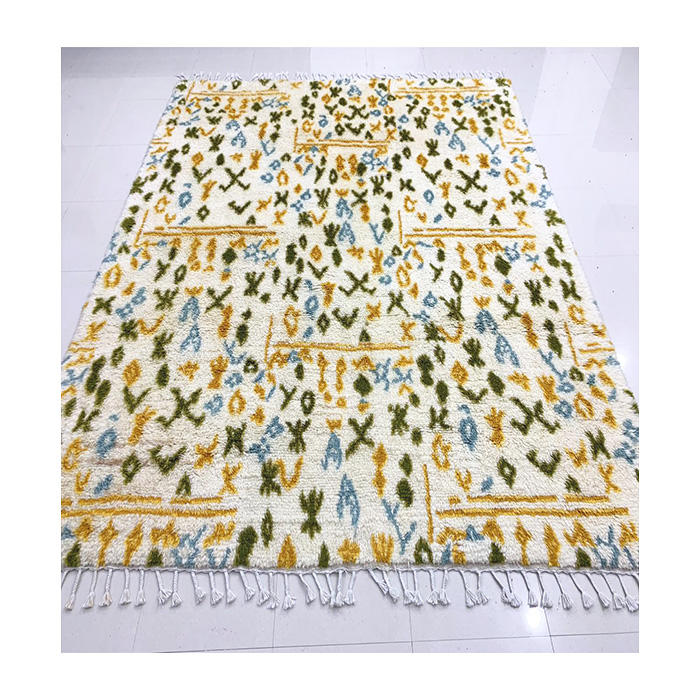High Extra Thick Soft Pile Moroccan Berber Handknotted Natural Rug Carpet Azilal Tapis Villa Hotel Home Interior Decoration