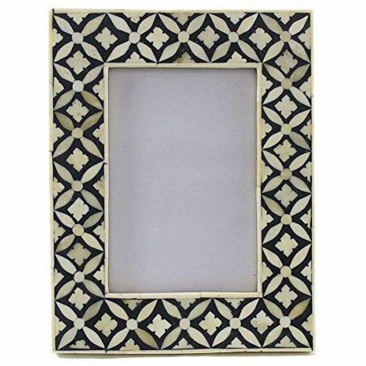 Moroccan Bone Inlay Photo Frame Black White Handmade Geometric Trellis Artistic Decorative Tabletop Modern Designer Holder Gift
