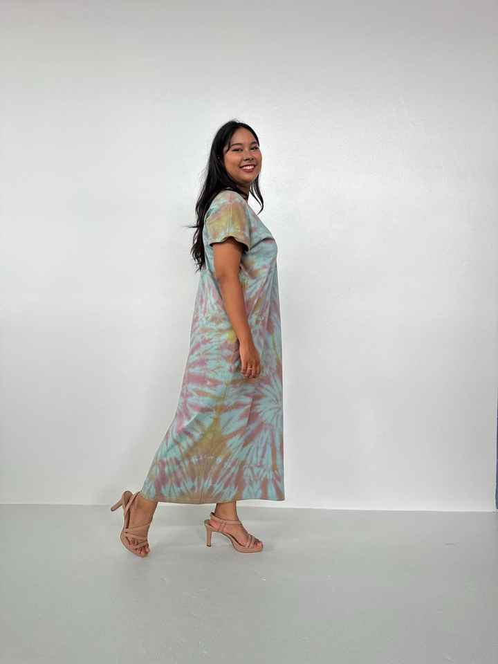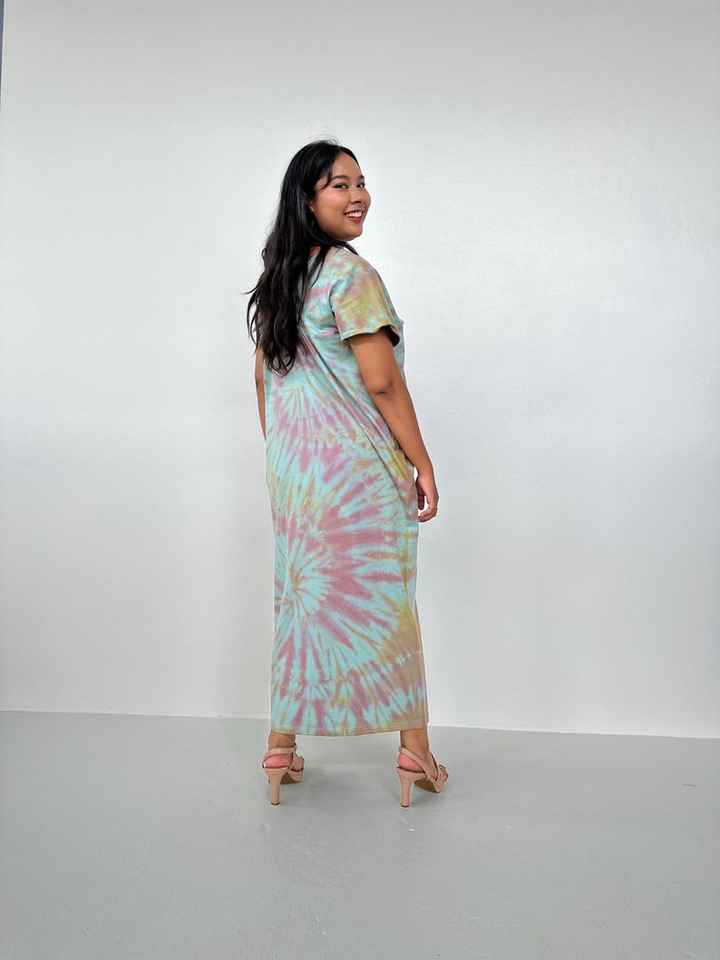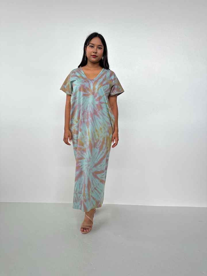 Moroccan Caftan Alisa Cotton Jersey Tie Dye Lounge Dress Womens V Neck T Shirt House Dress With Pockets