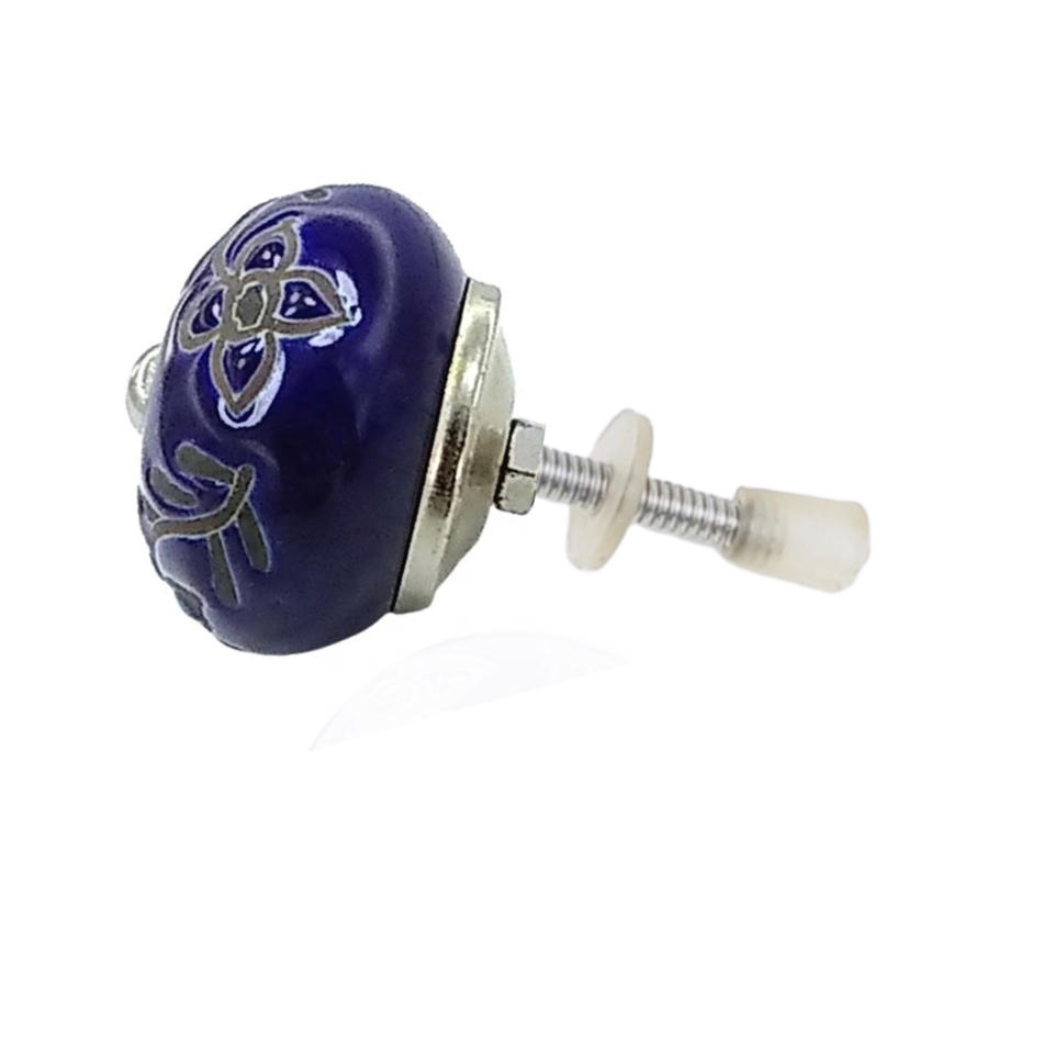 Moroccan Etched Royal Blue Flower Ceramic Knobs Drawer Cabinet Handle Pulls for Kitchen Bedroom Wardrobe Dresser Application
