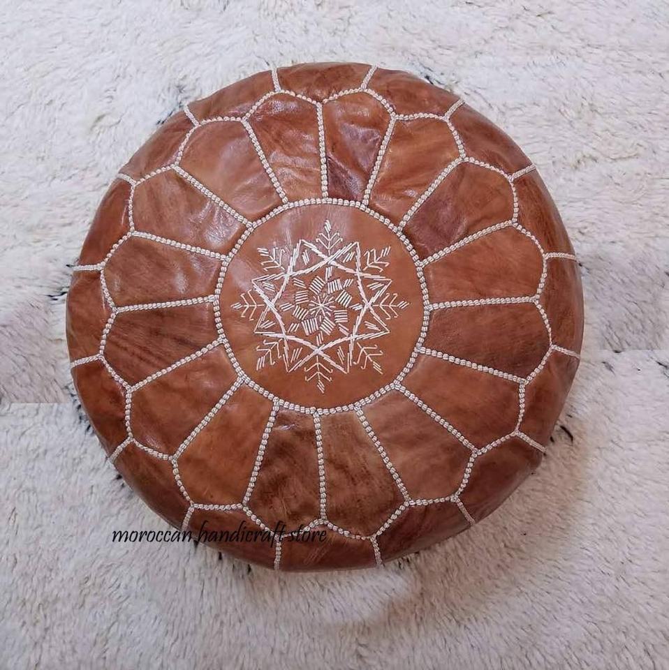 Moroccan Genuine Leather Poufs Tan Floor Ottoman Poufs