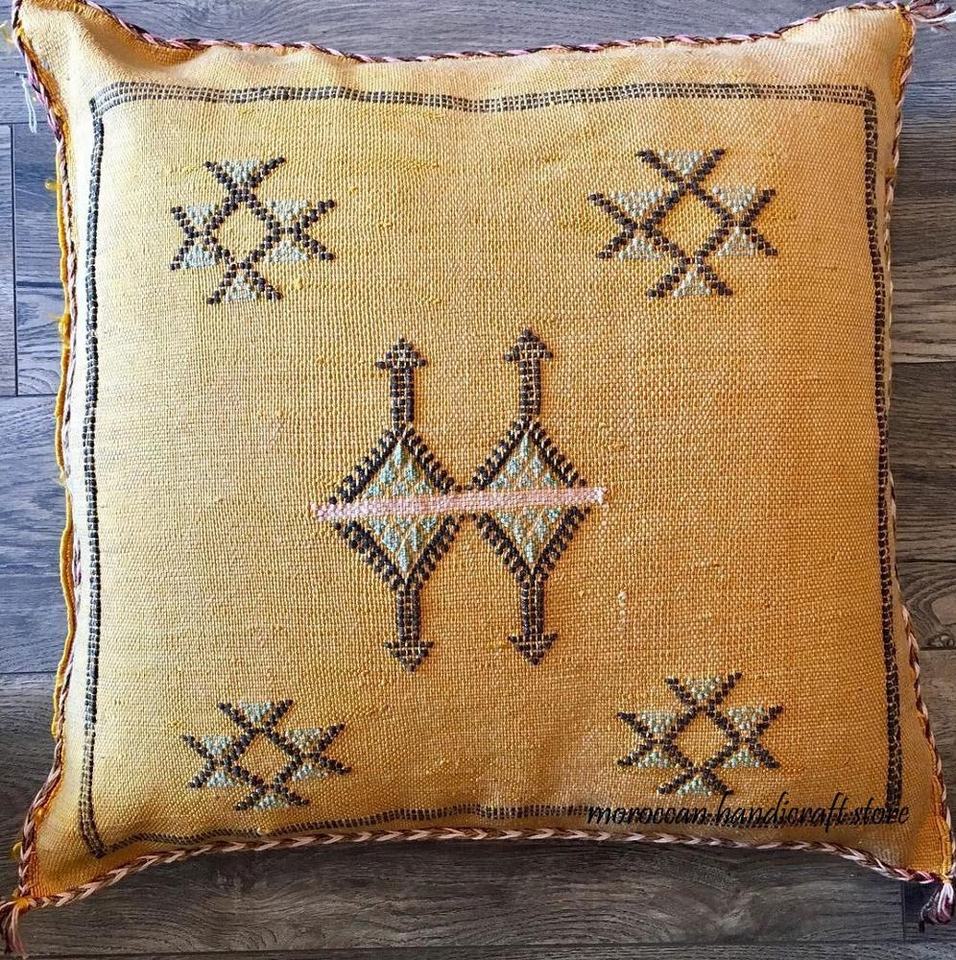 Moroccan Handmade Geometric Square Plain Cactus Silk Pillow