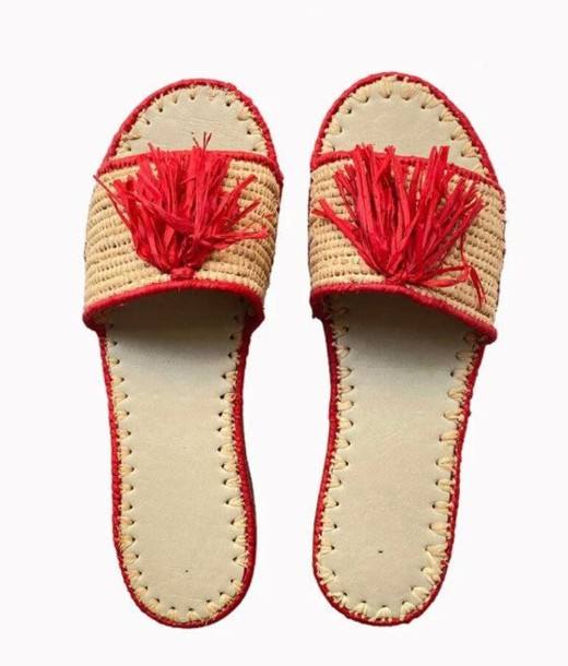 Moroccan Handmade Raffia Sandals – Natural Boho Summer Slides