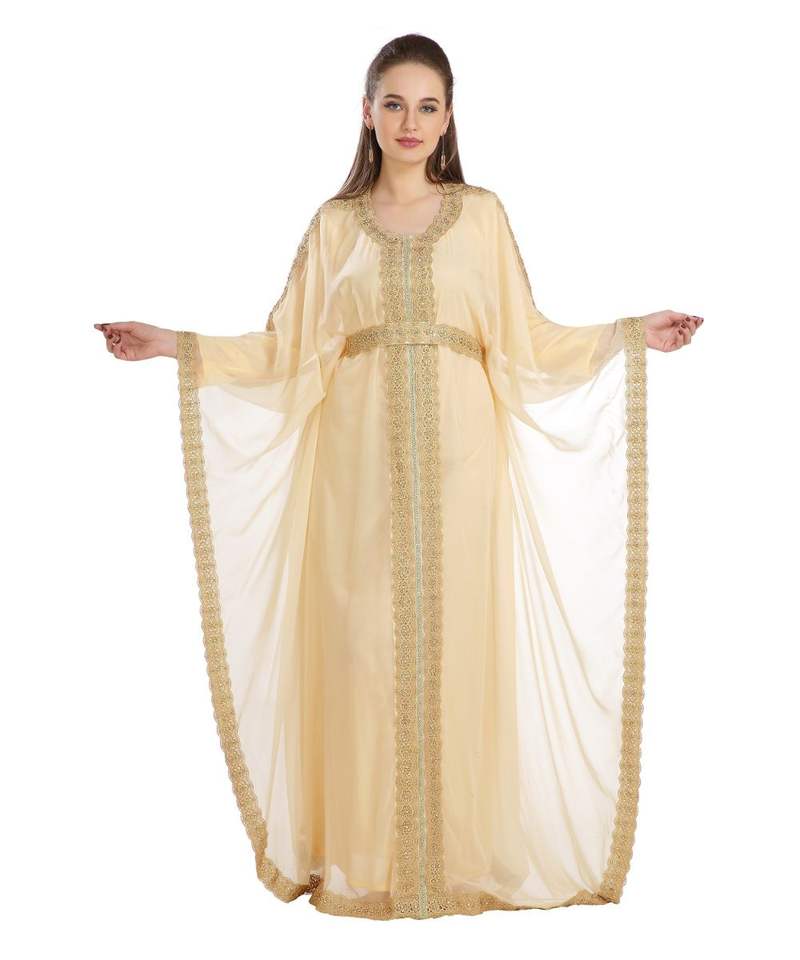Moroccan Islamic Kaftan Beach Fancy Modern Floor Length Long Sleeve For Women Dress
