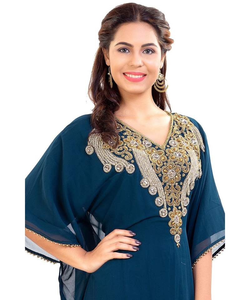 Moroccan Islamic Kaftan Beach Fancy Modern Floor Length Long Sleeve For Women Dress