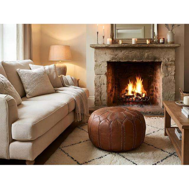 Moroccan Leather Pouf Handmade Ottoman Footstool Traditional Handcrafted Pouffe Home Decor Boho Ottoman Seat Living Roo