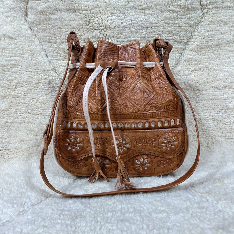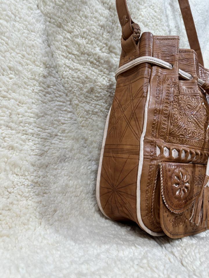 Moroccan Leather Unisex Oversized Shoulder Tote Bag Brown Zipper Closure