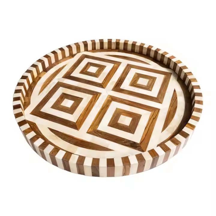 Art Deco Ice Blue Rectangle Bone Inlay Handmade Decorative Serving Tray for Hotels and Luxury Homes