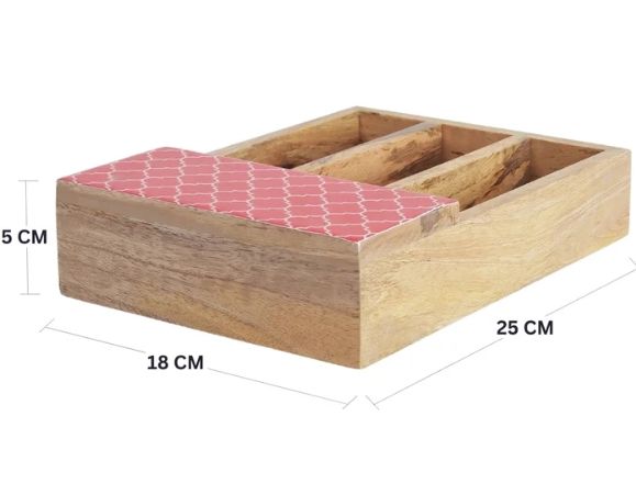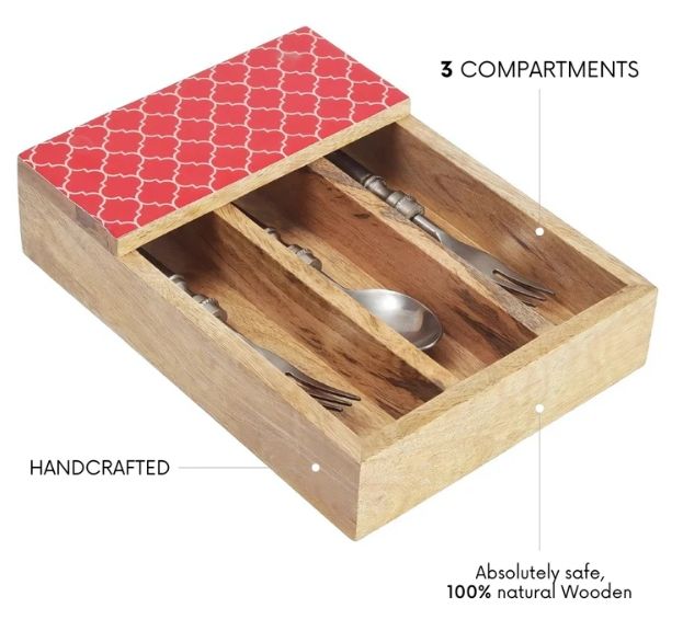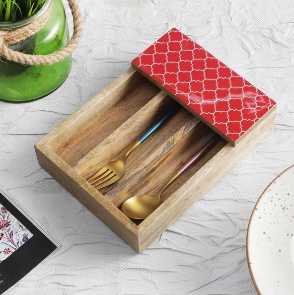 Moroccan Red Mango Wood Spoon Holder In Sheesham & Mango Wood Wooden Utensil Caddy Countertop Cutlery Holder