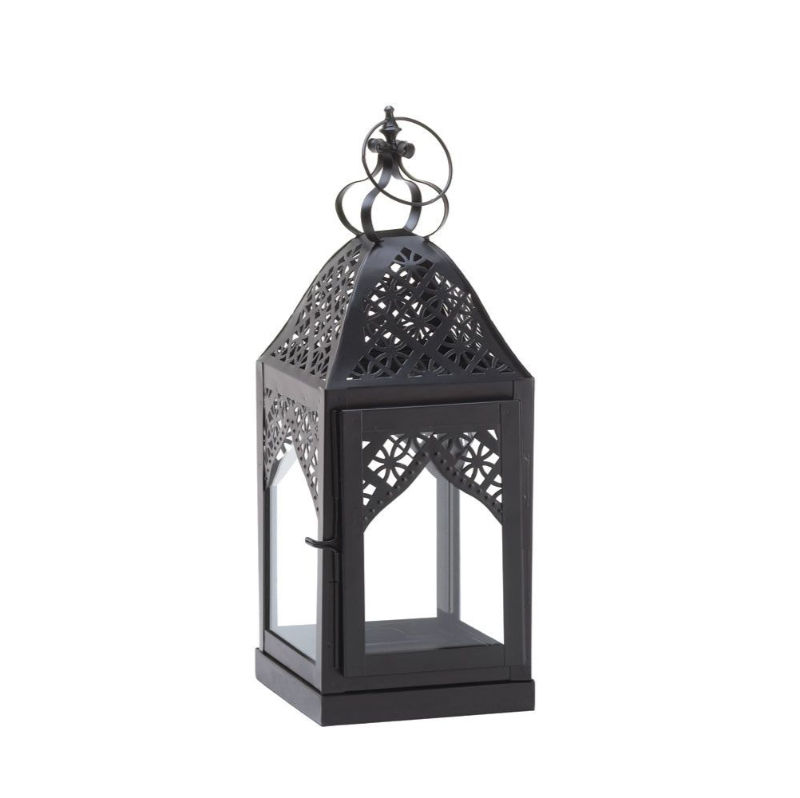 Moroccan Shape Metal & Glass Hanging Candle Lantern Black Finished for Home Ramadan Eid Lighting Decorations Lanterns
