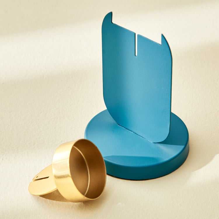 Moroccan Style Blue Glass Hurricane Candle Holder Gold Finish New Arrival Wood Candle Holders Lanterns for Home Christmas Decor