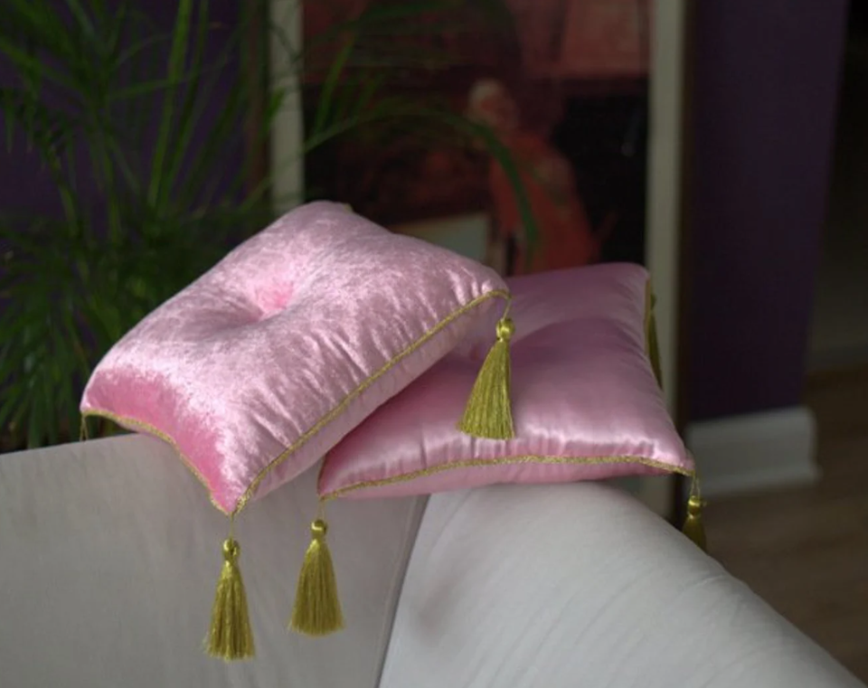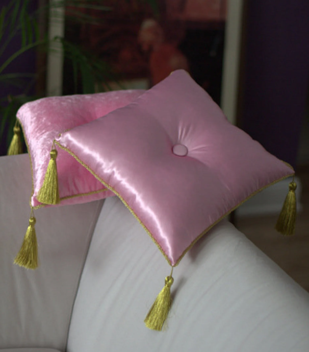 Bubblegum Satin Pillow Covers With Gold Tassels