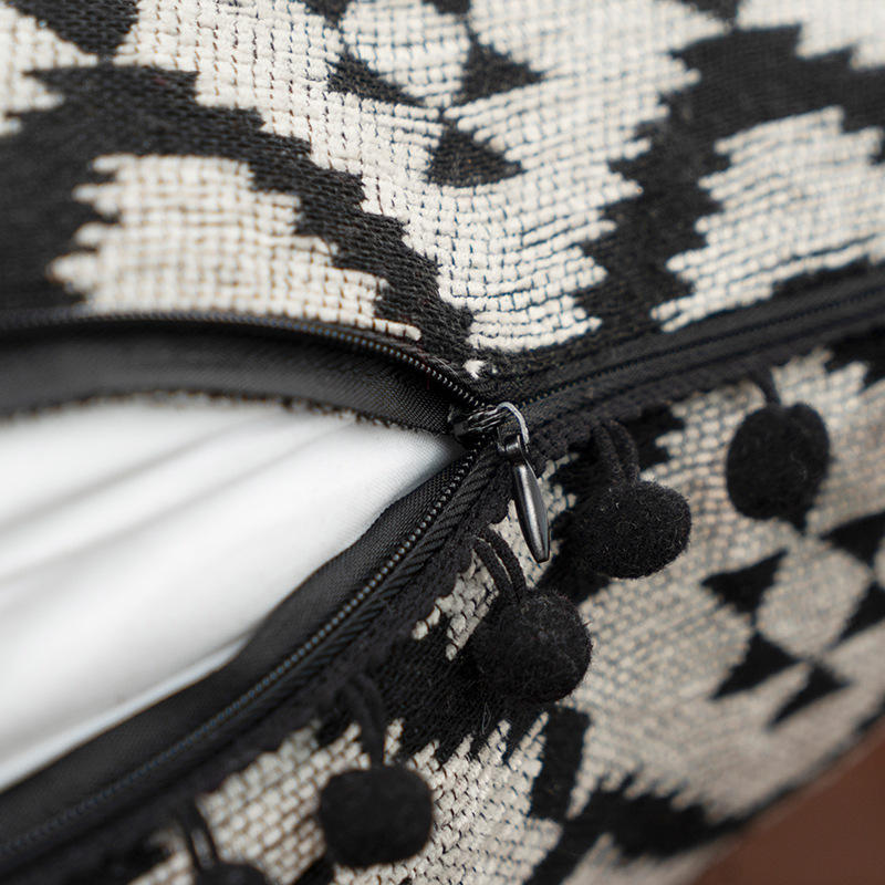 Moroccan Style Pillowcase Square Abstract Geometric Embroidered Polyester Home Decor Cushion Cover With Pom Pom Trim