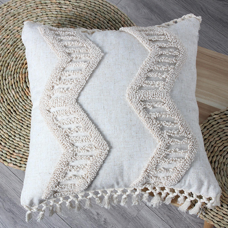 Moroccan Style Tufted Cushion Cover Rectangle Abstract Geometric Embroidered Pillowcase Home Decor Sofa Bed Use