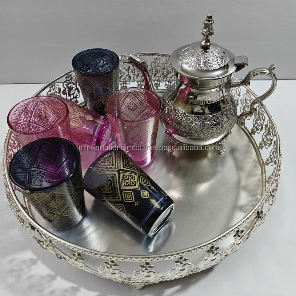 Moroccan Tea Set gift packing 6 glasses one tray one teapot in gift box