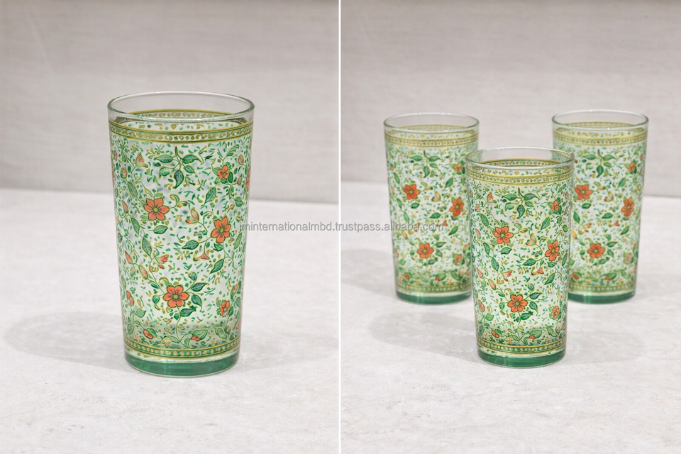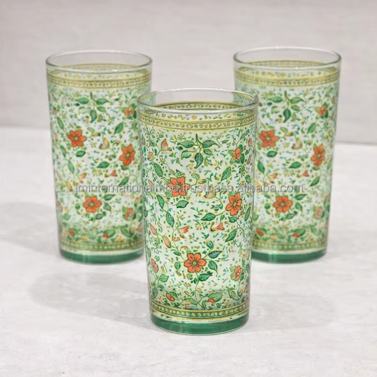 Moroccan tall glasses with floral pattern Moroccan Tea Cup /Arabic tea cup set of 6