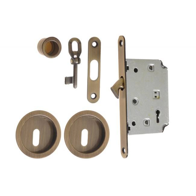 Mortise Lock for sliding doors with fitcangs, OG, Patina, BB