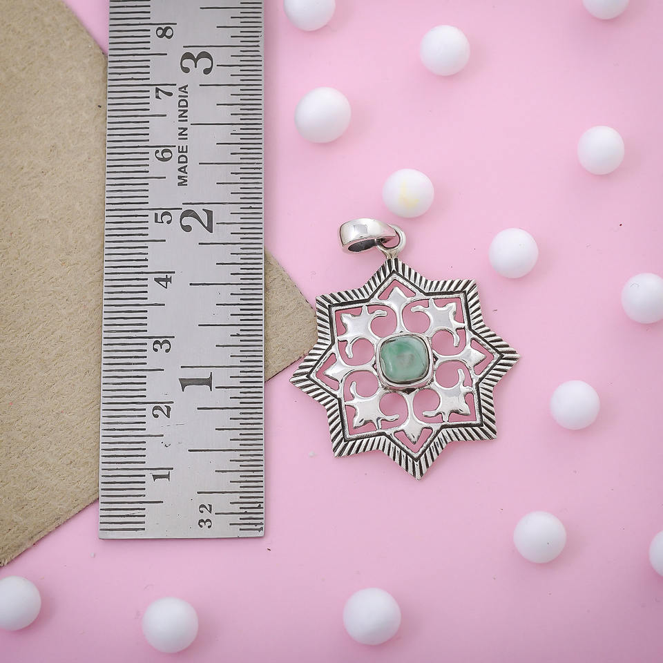 Mosaic Collection Amazonite Gemstone 925 Sterling Silver Beautifully Handmade Crafted Pendant Jewelry Jewelry Supplier
