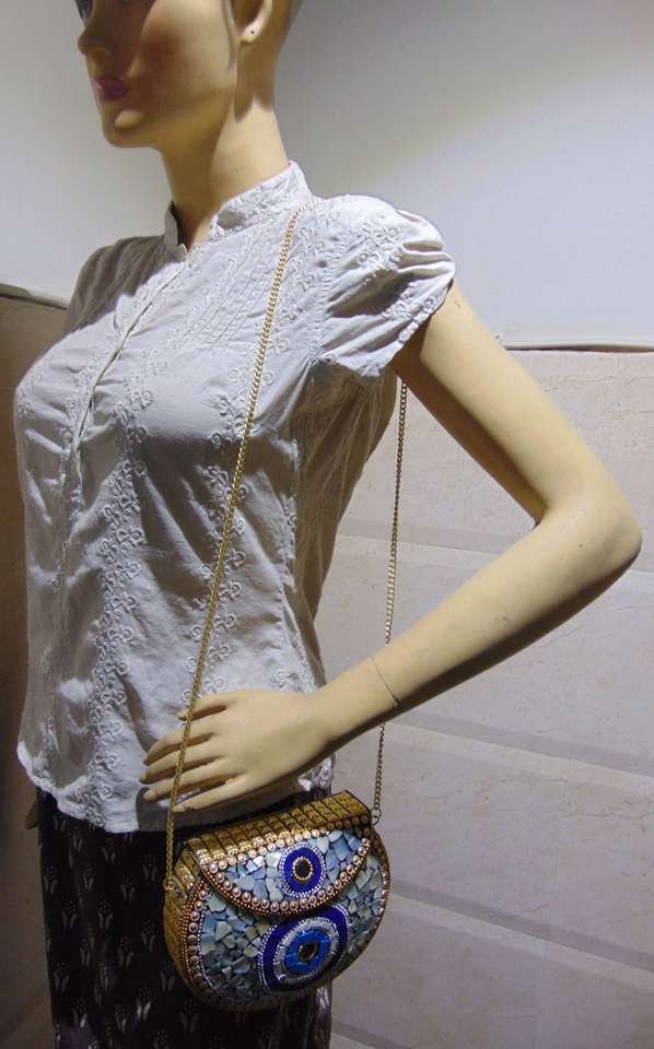 Mosaic Cosmetic & Mobile Phone Holder Wedding Bag Party Handbag Stylish Ladies Box Clutch Purse by Luxury crafts