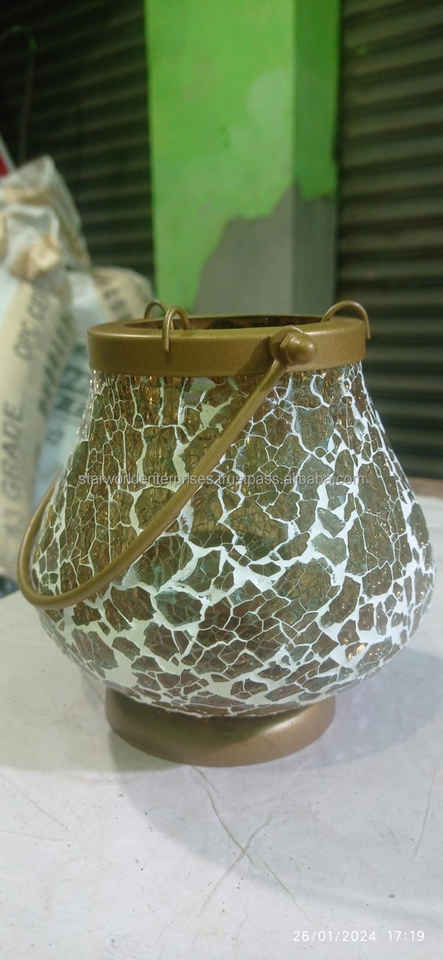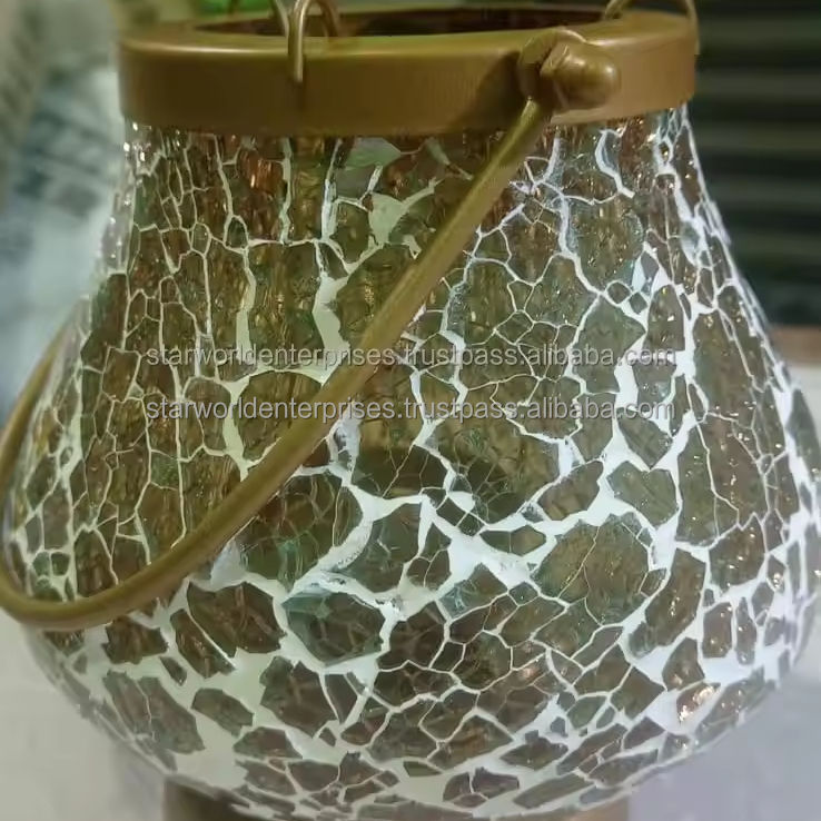 Mosaic Glass 12 Multi Color Table Candle Mosaic Glass Round Metal Candle Stand Set for Home and Garden Decoration From Indian