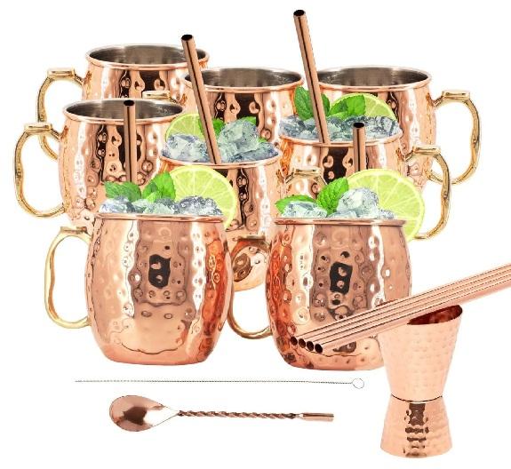 Moscow Mule Mugs Stainless Steel Lined Copper Moscow Mule Cups Set of 6 18oz w/Straws Jigger Spoon & Brush Tarnish-Resistant