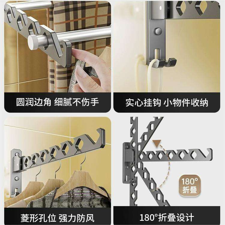 Moshang Wall Mounted Clothes Rack Single Bar Push Pull Type For Bathroom Balcony Indoor Use