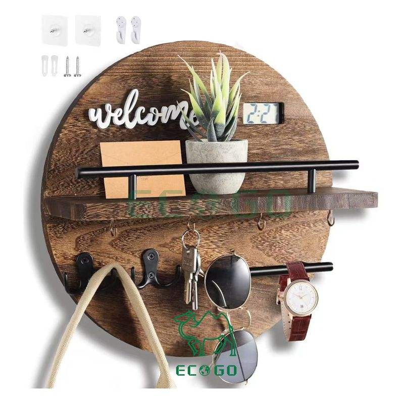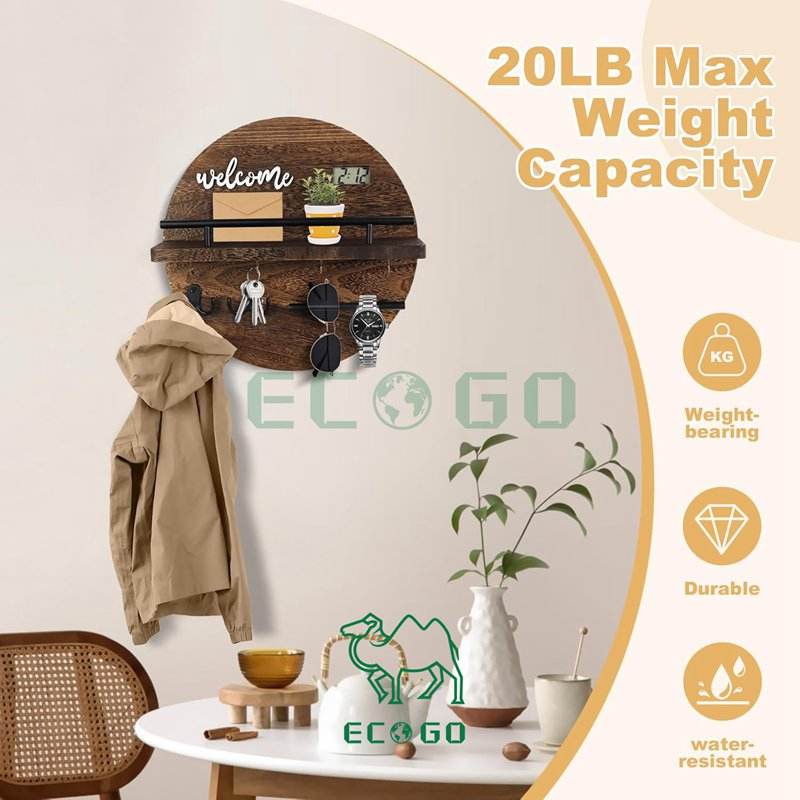 Moso Bamboo Double Tier Organizer Shelf with Key Holder Wall Mount Modern Home Decor for Hallway Kitchen Office